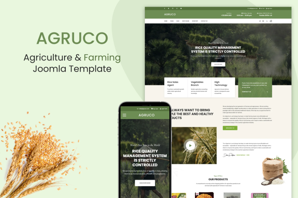 Agruco adalah template Joomla yang sangat fleksibel dan dapat diperluas, dirancang khusus untuk sektor pertanian. Jika Anda mencari solusi lengkap untuk mengangkat bisnis pertanian Anda ke level yang lebih tinggi, template ini tidak boleh Anda lewatkan. Dengan pengkodean yang hati-hati dan desain yang indah, Agruco akan membantu Anda membuat kehadiran online yang spektakuler dengan mudah.