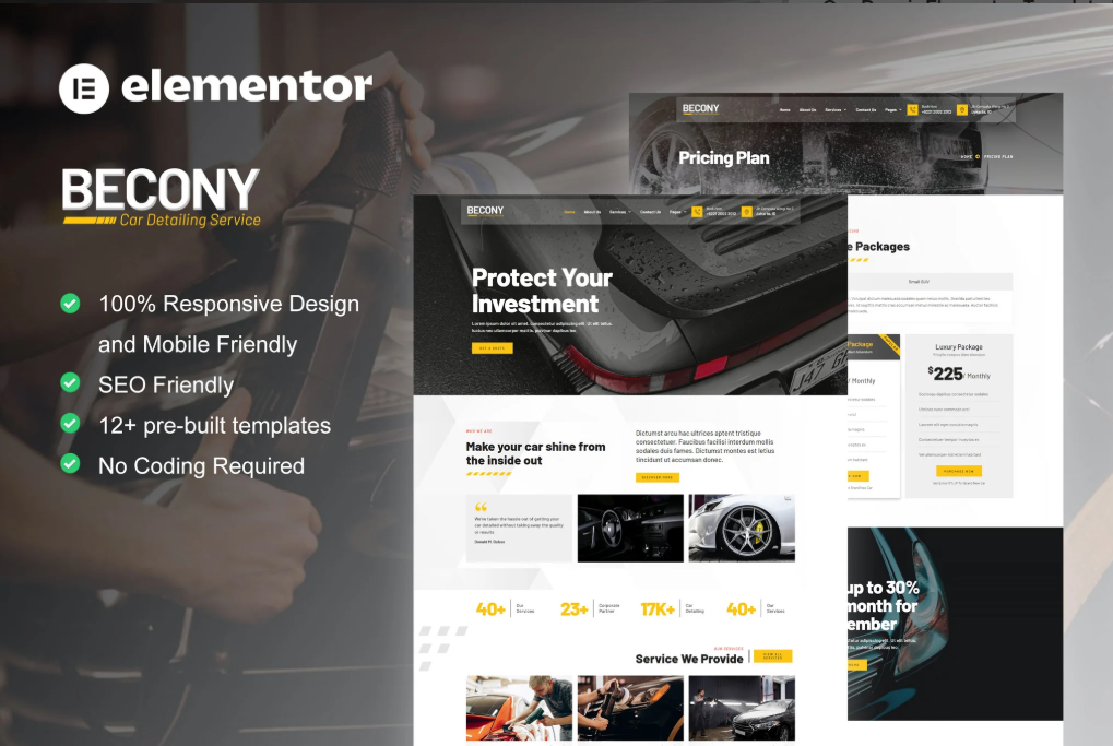 Becony – Elementor Template Kit untuk Layanan Detailing Mobil & Perbaikan Mobil