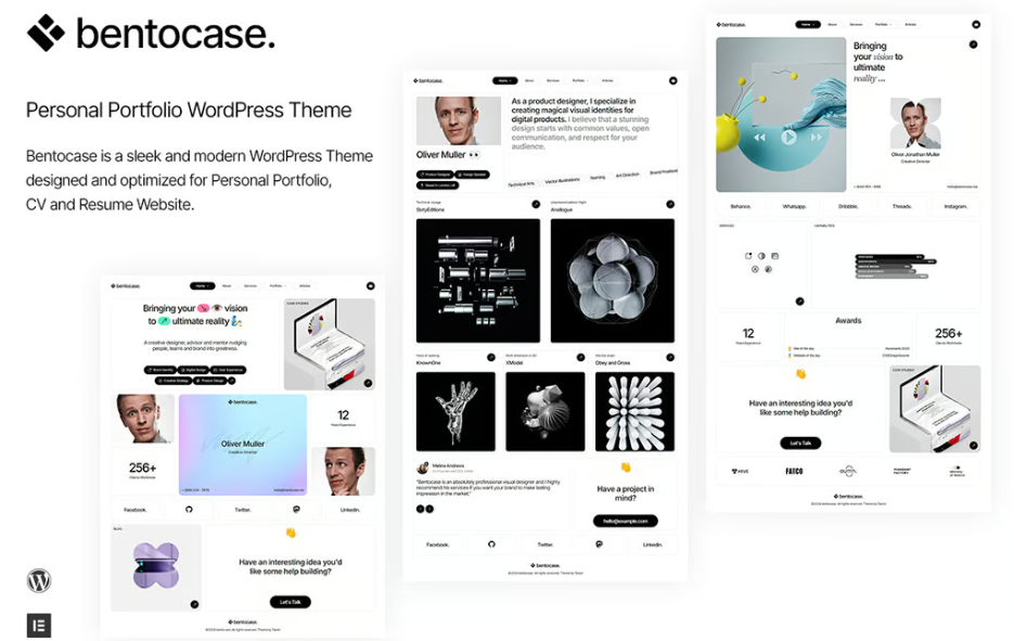 Selamat datang di dunia profesionalisme dan kecanggihan dengan Bentocase, tema WordPress yang dirancang untuk individu yang ingin membangun kehadiran online yang kuat. Tema ini cocok untuk para profesional kreatif, seniman, desainer, freelancer, dan pencari kerja. Dengan desain ramping, tata letak yang dapat disesuaikan, dan fitur responsif, Bentocase memungkinkan Anda untuk menampilkan proyek, menyoroti keterampilan, dan mempersonalisasi portofolio Anda dengan mudah.