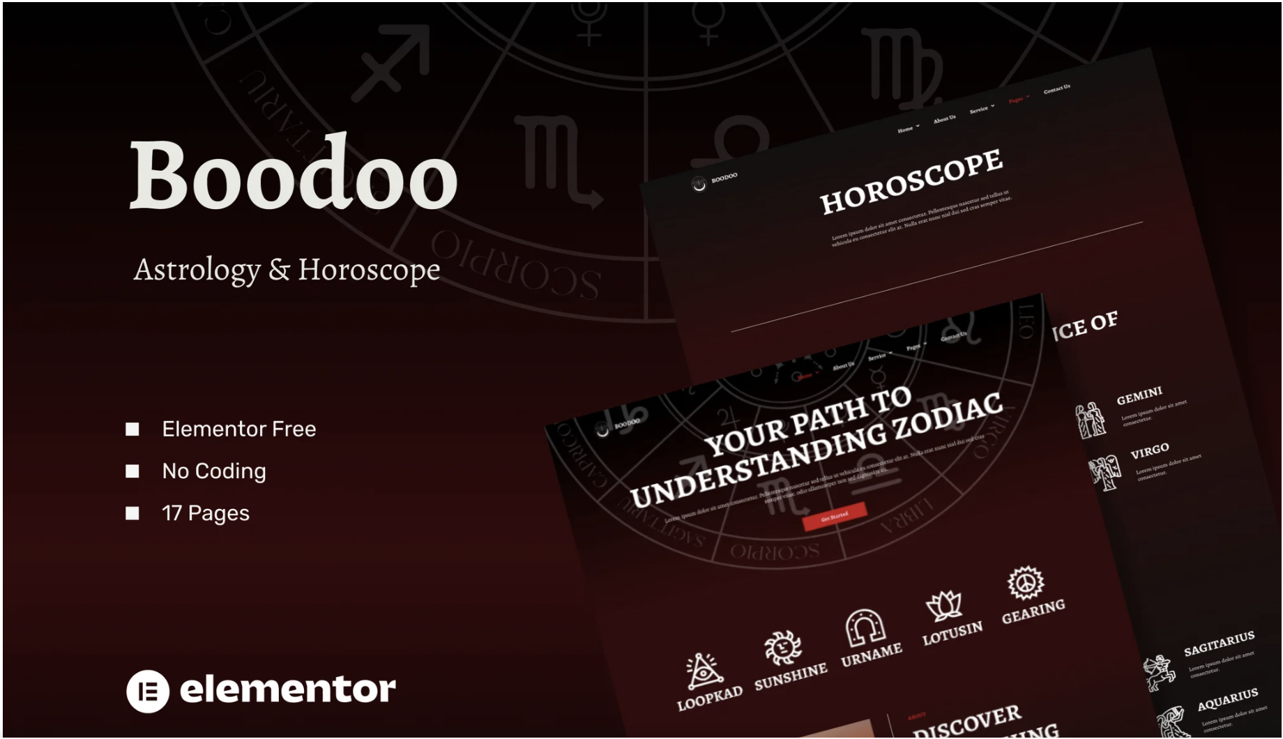 Boodoo – Astrology & Horoscope Elementor Template Kit