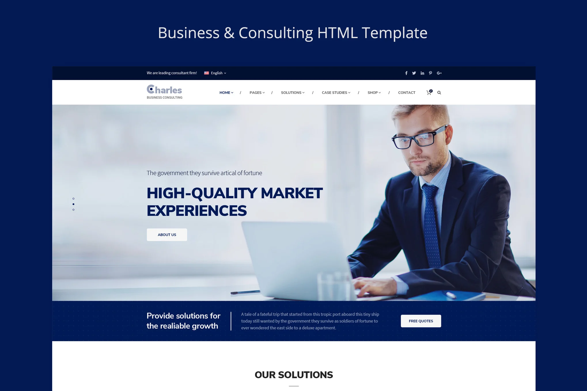 Charles adalah template HTML untuk Business-Consulting yang dirancang khusus untuk agen, bisnis multipurpose, dan layanan terkait bisnis. Template ini menawarkan desain modern, unik, dan bersih dengan beberapa halaman yang cocok untuk situs web korporat dan layanan konsultasi bisnis.