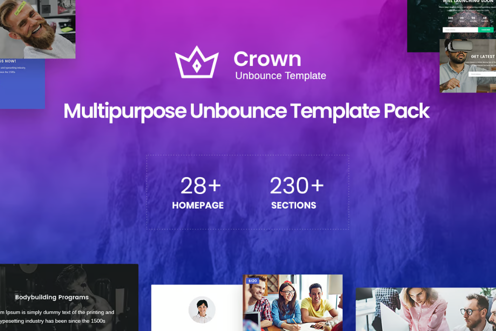 Crown Multipurpose Unbounce Landing Pages Pack adalah salah satu paket halaman pendaratan Unbounce multipurpose terbesar di Themeforest. Paket ini mencakup lebih dari 28 template landing page berbeda yang dirancang untuk berbagai kebutuhan bisnis maupun proyek digital.