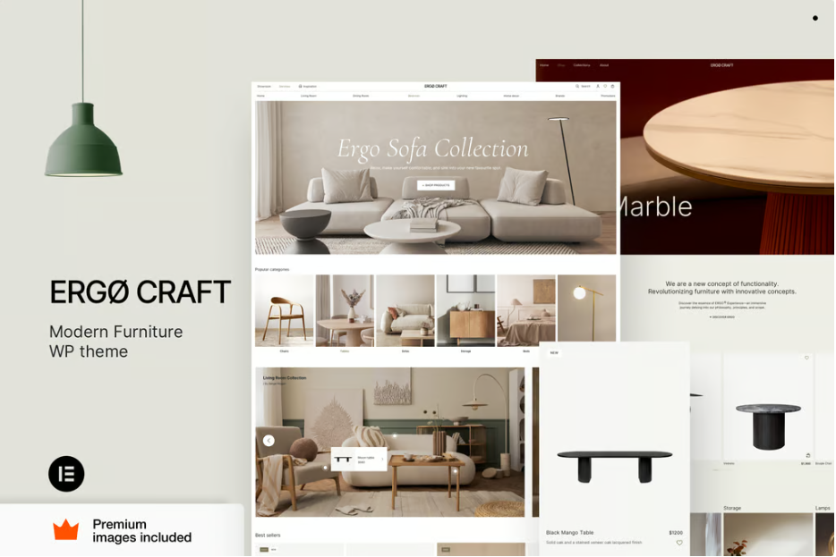 ErgoCraft adalah tema WordPress yang modern dan elegan, dirancang khusus untuk toko furnitur dan situs pembuat furnitur. Dengan kompatibilitas penuh dengan WooCommerce dan Elementor Pro Page Builder, Anda dapat membuat situs web yang menawan dan fungsional dengan mudah. Tema ini memungkinkan Anda untuk membuat situs web furnitur yang indah dan fungsional tanpa kesulitan.