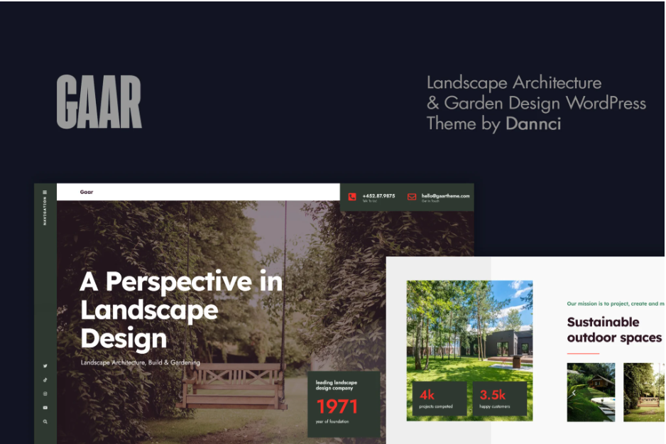 Gaar adalah tema arsitektur modern yang dirancang dengan cermat untuk perusahaan arsitektur lanskap dan desain taman. Tema ini hadir dengan desain responsif penuh, tata letak native yang solid, dan sangat cocok untuk bisnis terkait proyek lanskap, pemeliharaan taman, atau perusahaan konstruksi.