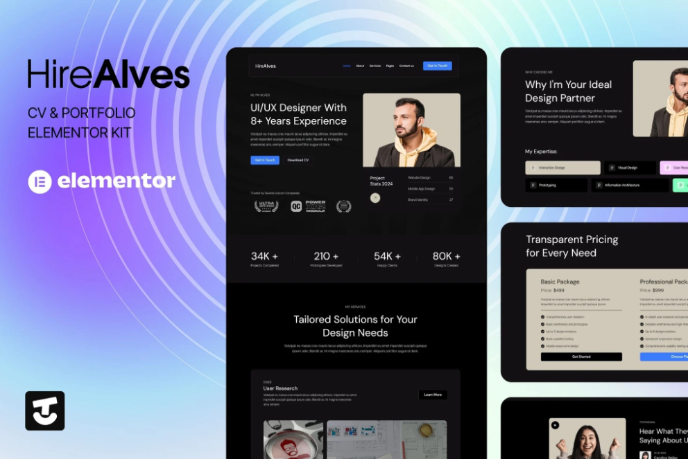 HireAlves – Template Website CV & Portofolio adalah Kit Elementor modern dan ramping yang dirancang khusus untuk para profesional yang ingin memamerkan resume, portofolio, dan keterampilan mereka dengan cara yang stylish dan efisien. Dengan tata letak yang bersih dan responsif, HireAlves memastikan merek pribadi Anda menonjol di semua perangkat. Baik Anda seorang freelancer, desainer, atau pengusaha, template ini menawarkan bagian yang dapat disesuaikan untuk menyoroti pengalaman, layanan, dan pencapaian Anda. Template ini terintegrasi dengan mulus dengan Elementor, memungkinkan pengeditan yang mudah tanpa memerlukan pengetahuan coding. Template dan widget yang sudah dibangun sebelumnya memudahkan Anda untuk membuat kehadiran online profesional yang unik. Tampilkan keahlian dan proyek Anda dengan mudah, dan pandu calon klien atau pemberi kerja melalui karya Anda.