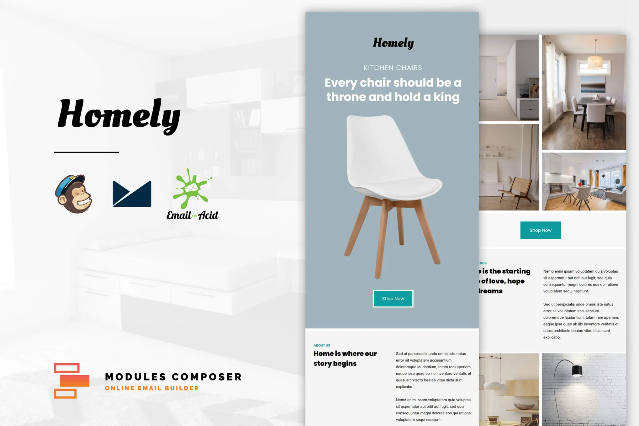 | Tag | Builder, campaignmonitor, dragdrop, ecommerce, emailbuilder, emailtemplate, Furniture, Interior, mailchimp, modulescomposer, multipurpose, newsletter, psd2newsletters, responsive, startup |