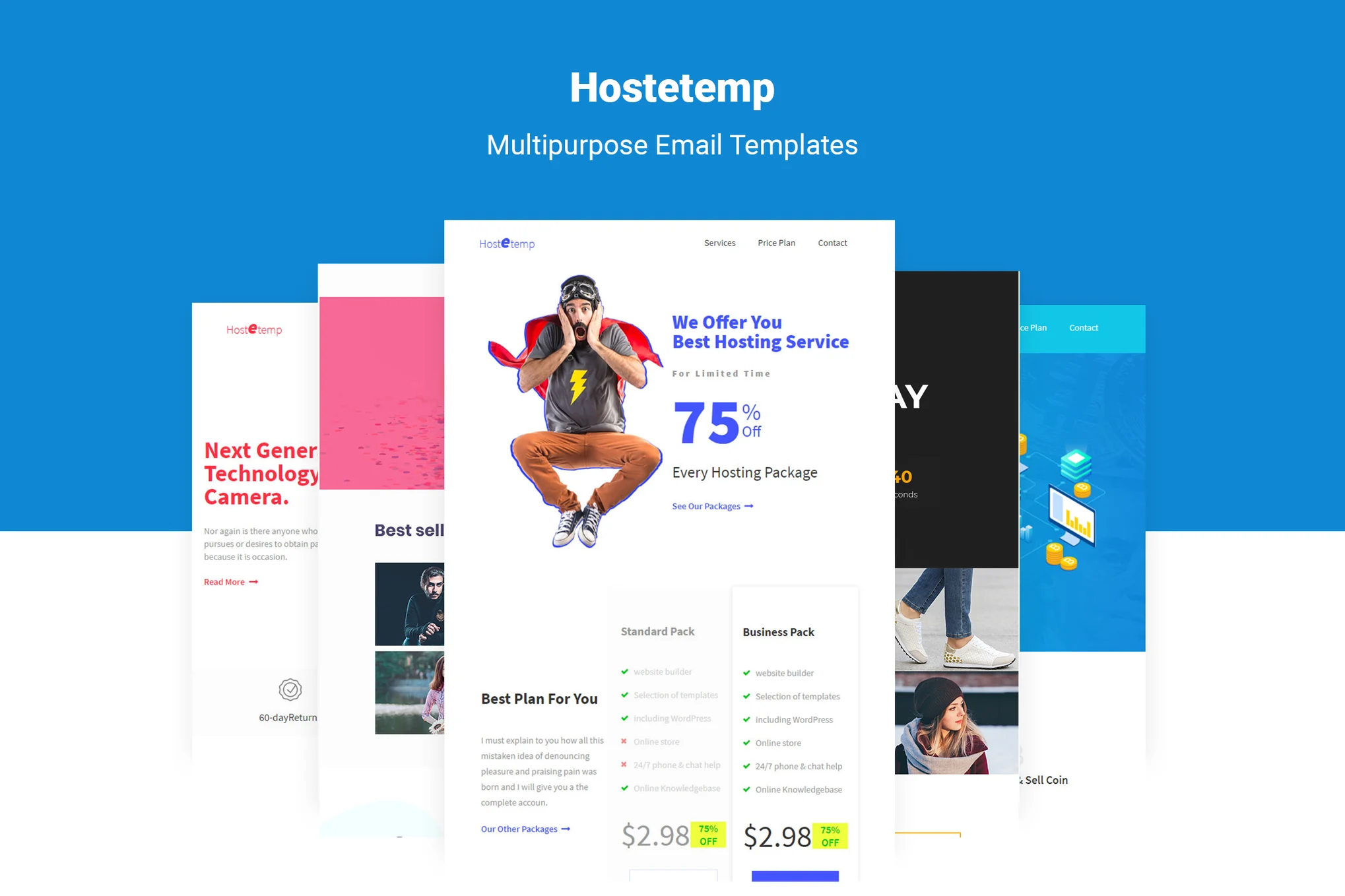 Hostetemp adalah Template Email Responsif Serbaguna yang dirancang untuk kebutuhan Cryptocurrency, Hosting, Domain, VPN, Layanan Cloud, VOIP, dan Bisnis Teknologi. Template ini siap digunakan dengan MailChimp, CampaignMonitor, dan StampReady (drag-and-drop). Siapa pun dapat dengan mudah memperbarui atau mengedit template ini dengan mengikuti dokumentasi yang telah disusun dengan baik.