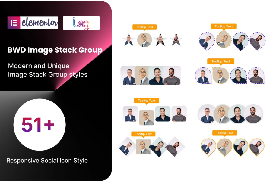BWD Image Stack Group adalah plugin WordPress berbasis Elementor yang ringan untuk menambahkan Image Stack Group ke situs web Anda tanpa memerlukan pengetahuan pengkodean. Tersedia 52 desain preset Image Stack Group unik yang terlihat luar biasa. Sebagai informasi, lebih dari 100 desain lainnya akan segera ditambahkan.
