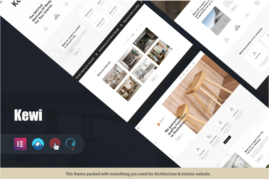 Kewi adalah tema WordPress bersih dan modern yang dirancang khusus untuk situs web yang berhubungan dengan arsitektur, desain bangunan, konstruksi, dekorasi, properti, furnitur, rumah, dan bisnis relevan lainnya. Dibuat menggunakan praktik pengkodean dan desain terbaik oleh penulis berpengalaman di ThemeForest dengan lebih dari 10 tahun pengalaman, Kewi hadir dengan gaya dan elemen menakjubkan yang memungkinkan Anda membuat situs web profesional dengan cepat.