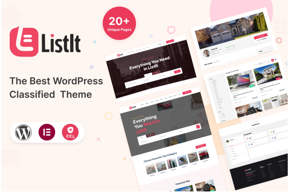 ListIt adalah tema WordPress yang dirancang bersih, modern, dan responsif untuk Iklan Klasifikasi. Tema ini dirancang dengan sangat baik dan terorganisir untuk berbagai jenis situs Iklan atau listing online. Anda dapat dengan mudah memodifikasi dan memperluas layout tema ini. Tema ini mencakup layout homepage yang bersih dengan dua gaya header berbeda dan lebih dari 15 halaman dalam variasi yang berbeda.
