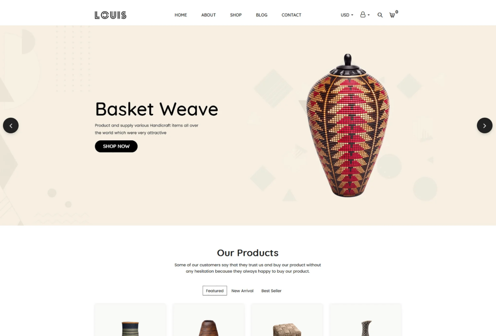 Louis – Handmade & Craft Shopify Theme adalah tema Shopify yang didedikasikan untuk toko produk handmade. Tema ini sangat cocok untuk kategori seperti aksesori, fashion, furnitur, dekorasi rumah, kerajinan tangan, dan perhiasan. Dengan desain minimalis, Louis dibangun menggunakan Shopify Sections yang kuat dan menggunakan pembuat halaman drag & drop, memungkinkan Anda untuk menyesuaikan toko online sesuai keinginan.