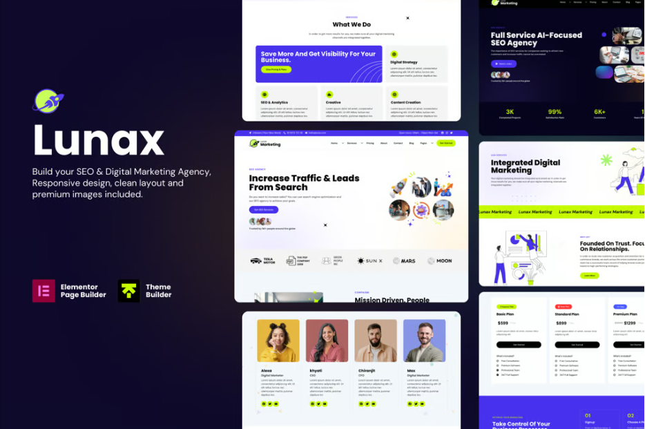 Lunax adalah tema WordPress terbaik untuk Digital Marketing & SEO Agencies, kompatibel dengan WordPress 6.2 dan Elementor Page Builder. Dengan Lunax, Anda dapat membuat situs web yang menakjubkan tanpa memerlukan pengetahuan coding—tanpa perlu coding sama sekali!