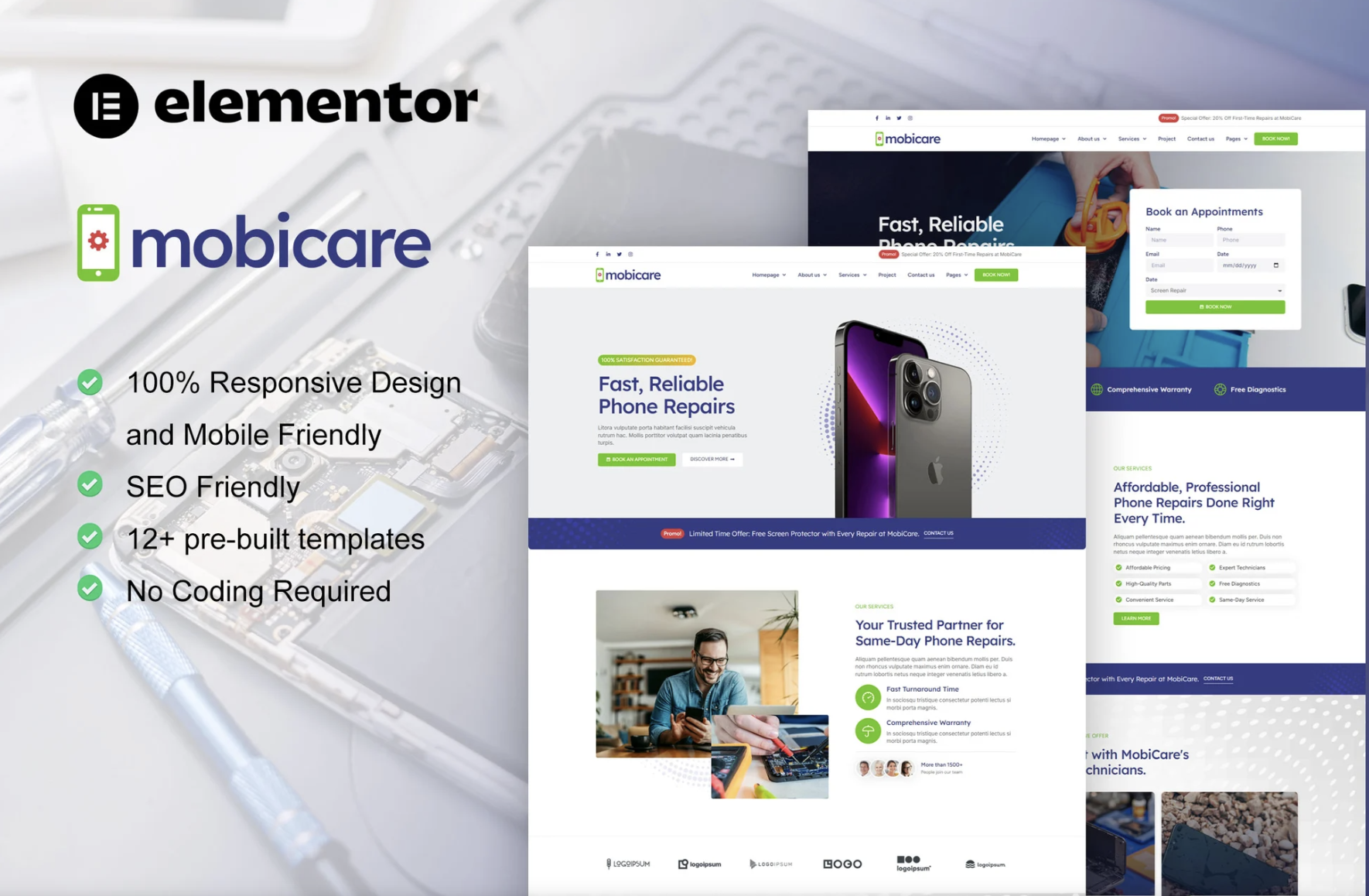 MobiCare – Mobile Phone & Computer Repair Elementor Pro Template Kit