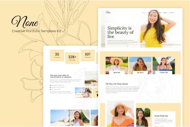 None adalah Template Kit Fashion yang cantik dan bergaya untuk Elementor yang dirancang untuk pembuat halaman Elementor. Template ini sempurna untuk Model Kreatif, Seniman, Fotografer, atau hampir semua profesional.