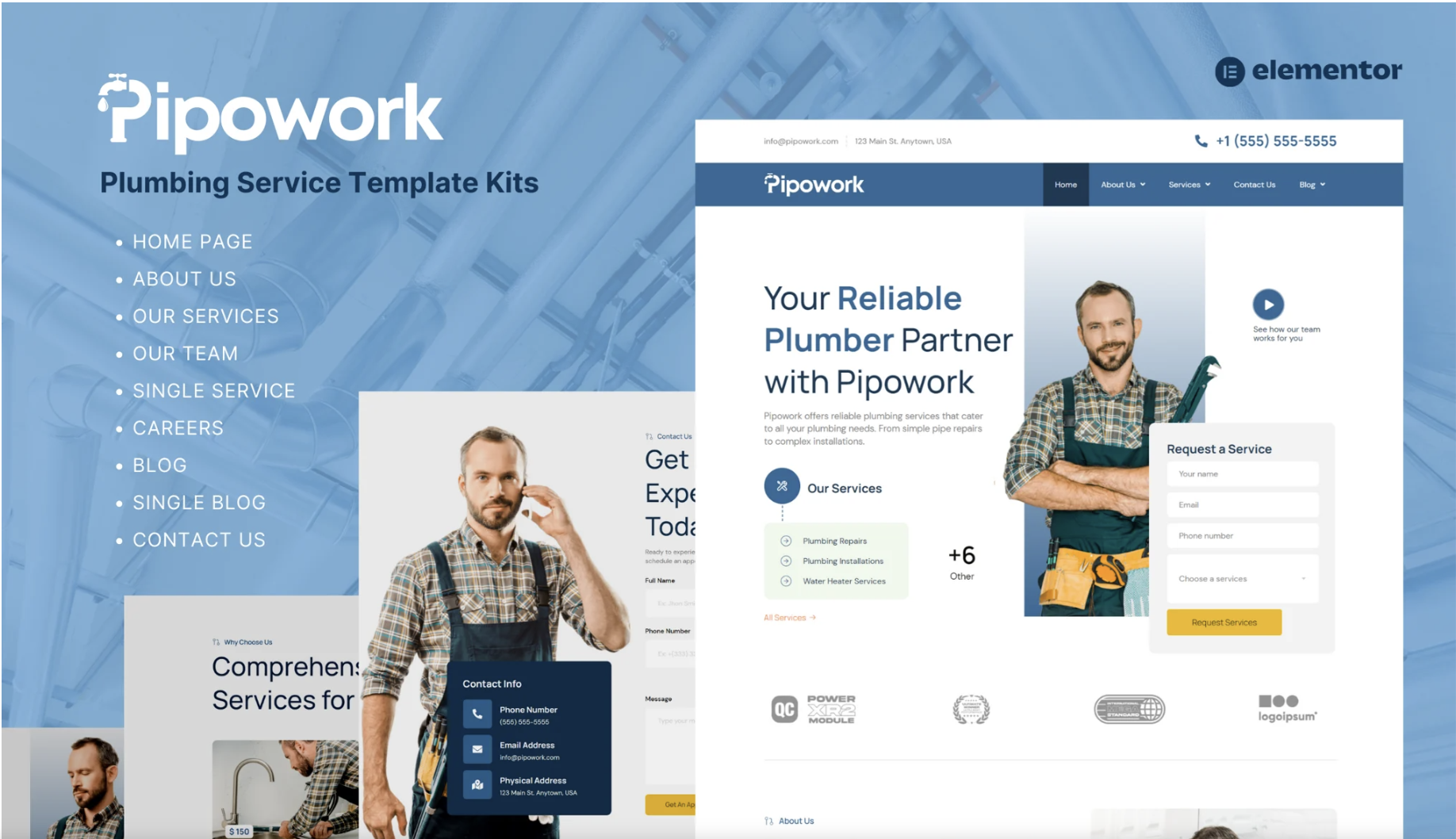 Pipowork – Plumbing Service Business Elementor Template Kits