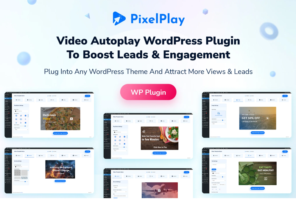 Pixel Play memiliki fitur yang dapat menampilkan video Anda dengan overlay yang menggoda. Tampilan pada video Anda akan membangkitkan semangat untuk merekam lebih banyak video untuk audiens dan pemirsa Anda. Anda bisa memulai dengan tiga langkah mudah: tambahkan URL video Anda, pilih template, edit sedikit, dan voilà, siap untuk mempublikasikan shortcode di situs WordPress Anda. Santai dan lihat hasilnya setelah itu.