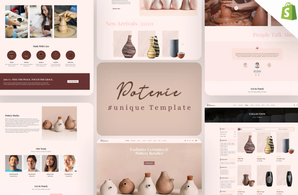 Poterie adalah Tema Shopify yang dirancang untuk Toko Pot Tanah Liat Minimalis, Kerajinan Keramik Handmade, dan Toko Claystone. Tema ini sangat cocok untuk toko Dekorasi Keramik, Toko Keramik, Lantai Keramik, Toko Kerajinan Tangan, dan Toko Kerajinan Online. Ini adalah tema pasar kerajinan tangan yang ideal untuk kerajinan tangan, hadiah kerajinan handmade, dan eCommerce kerajinan lainnya.