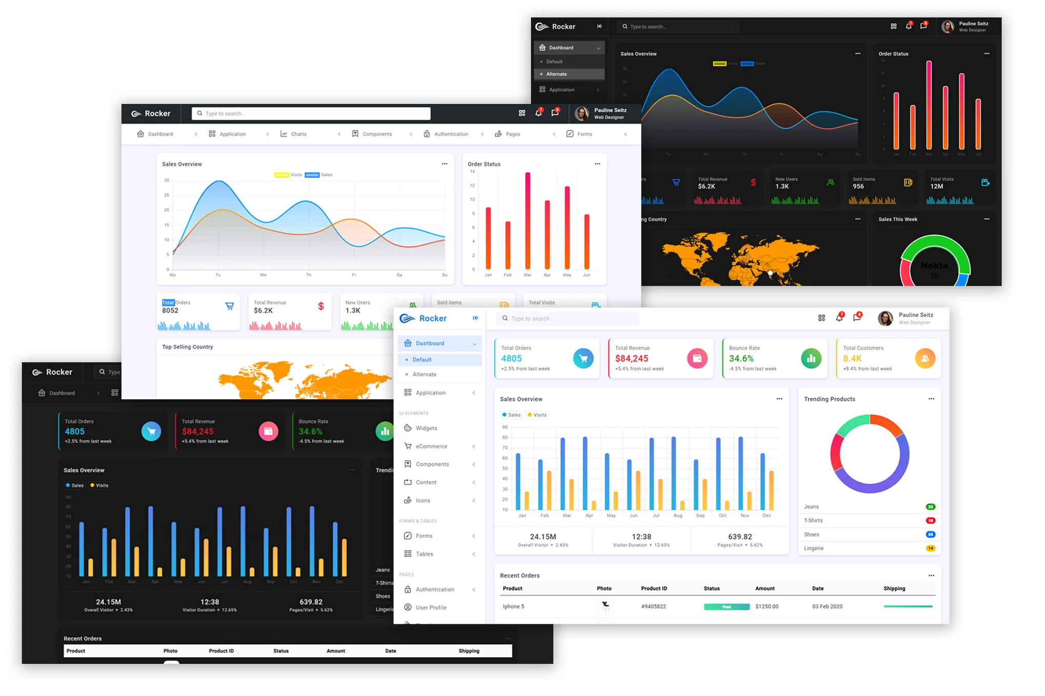 Rocker Admin adalah template admin berbasis Angular 10+ dan kerangka kerja Bootstrap 4. Template ini memiliki dua dasbor berwarna yang dirancang dengan indah. Template ini sangat kuat dan ramah bagi pengembang. Rocker Admin mencakup dasbor dalam mode warna, terang, dan gelap, serta koleksi besar komponen UI dengan plugin jQuery & Bootstrap terbaru. Template ini sepenuhnya responsif dan kompatibel dengan semua browser web utama, desktop, dan berbagai jenis smartphone. Template ini dapat digunakan untuk membangun berbagai jenis aplikasi web seperti dasbor admin kustom, aplikasi web eCommerce, CMS, atau aplikasi web CRM.