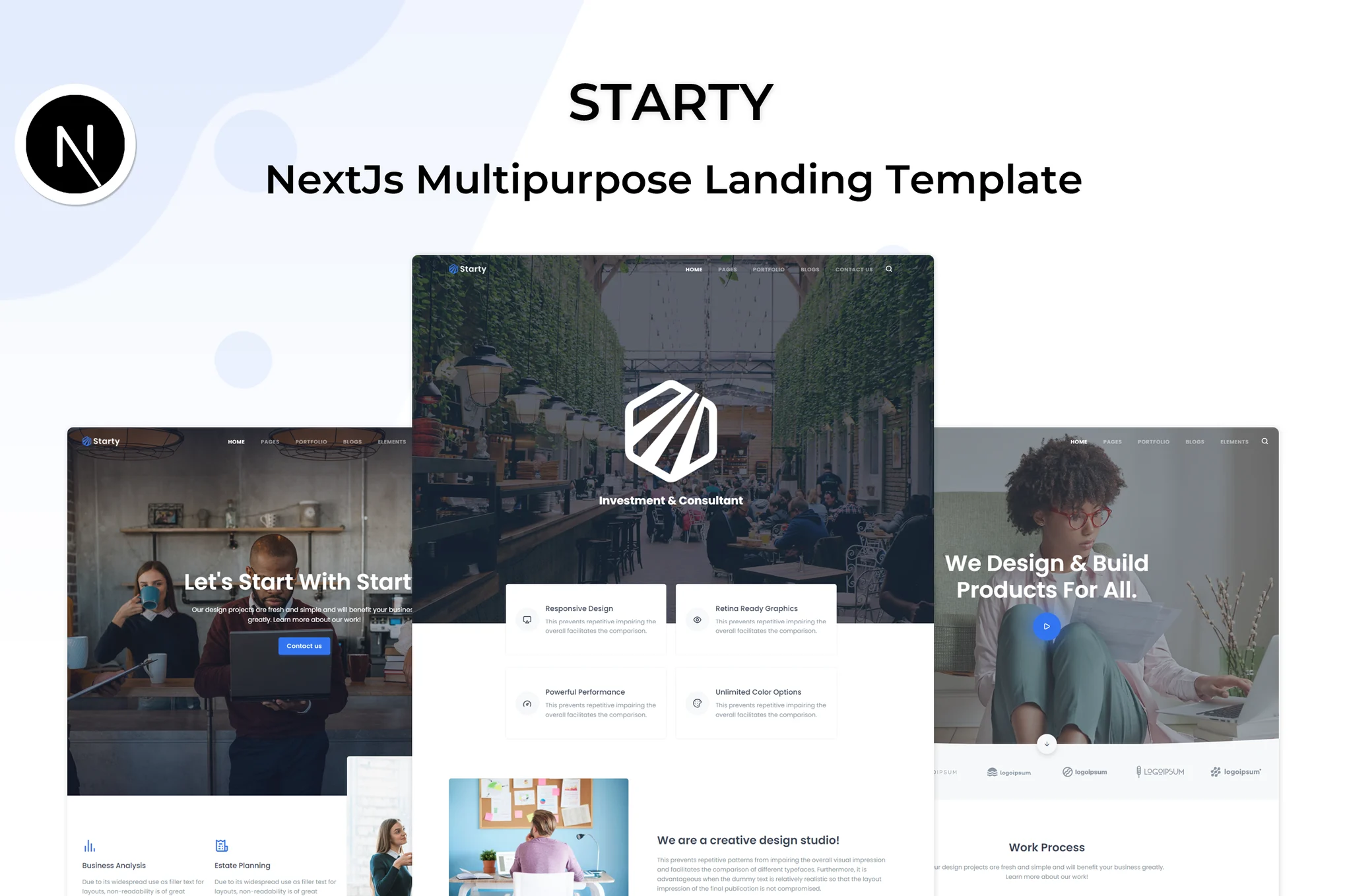 Starty adalah template Next.js yang kuat dan responsif dengan banyak halaman dan satu halaman, dirancang untuk berbagai jenis bisnis. Template ini cocok untuk Startup, Bisnis Korporat, Keuangan, Aplikasi, SaaS, Agensi SEO, Pemasaran Digital, Peluncuran Produk, Restoran, Kafe, Portofolio Pribadi, Pengembang, Blog Pribadi, Amal, Manajemen Acara, e-Commerce, dan bisnis lainnya. Dibangun dengan Next 14.x, React 18.x, dan Bootstrap 5.x, Starty menawarkan lebih dari 18 demo halaman depan unik untuk berbagai niche dan 20+ gaya portofolio luar biasa.
