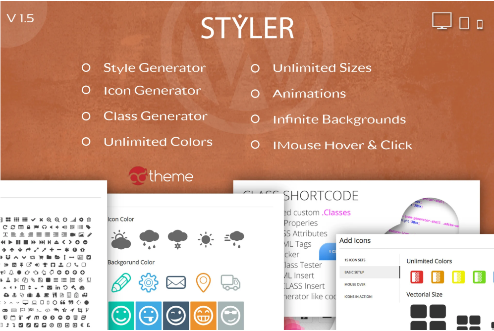 | Tag | animated builder, class, css, editor, font, generator, google, icomoon, icon, icons, retina, shortcode, style, vector |