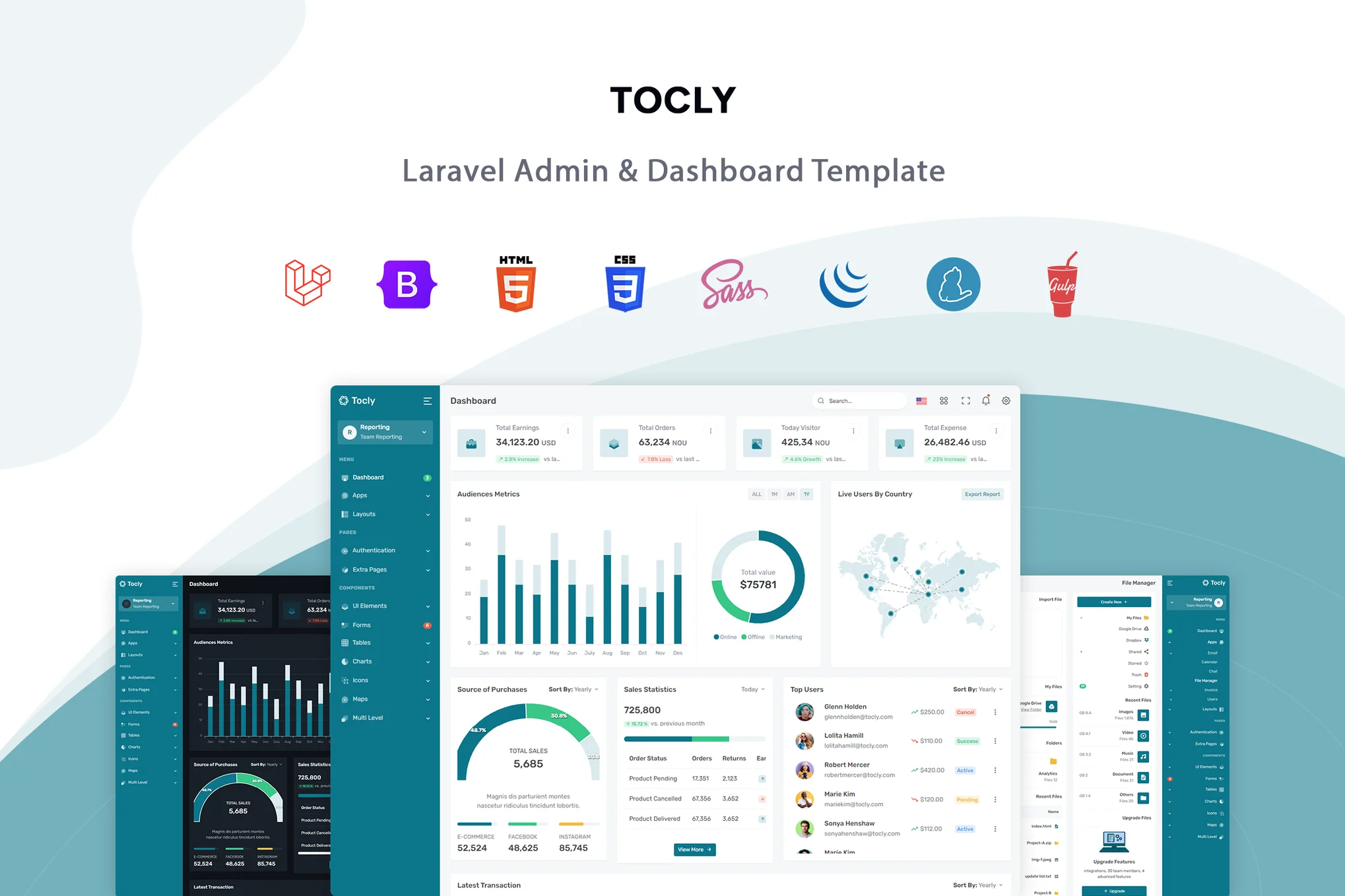 Tocly adalah template dashboard admin yang sepenuhnya responsif, dibangun dengan Laravel 10, Vite, dan Bootstrap 5. Tocly admin mengusung desain yang sederhana dan modular, memungkinkan untuk kustomisasi dengan mudah. Template ini dilengkapi dengan berbagai elemen UI yang dapat digunakan kembali, widget, dan fitur lainnya. Ini adalah template ideal untuk proyek dashboard atau aplikasi admin berbasis web Anda berikutnya. Tocly membantu Anda untuk membuat proyek Laravel lebih cepat dari sebelumnya. Template ini bisa digunakan untuk membuat antarmuka berbasis SaaS, dashboard administrator, atau apapun yang ingin Anda bangun di web. Tocly membantu tim Anda bergerak lebih cepat, sekaligus menghemat biaya dan waktu pengembangan.