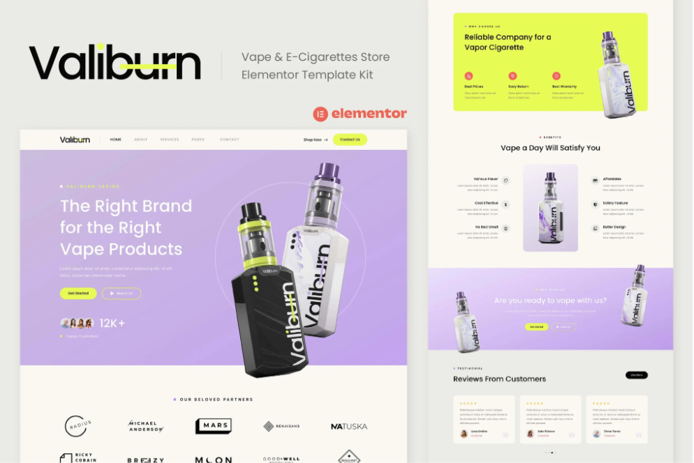 Valiburn – Vape & E-Cigarettes Store Elementor Template Kit