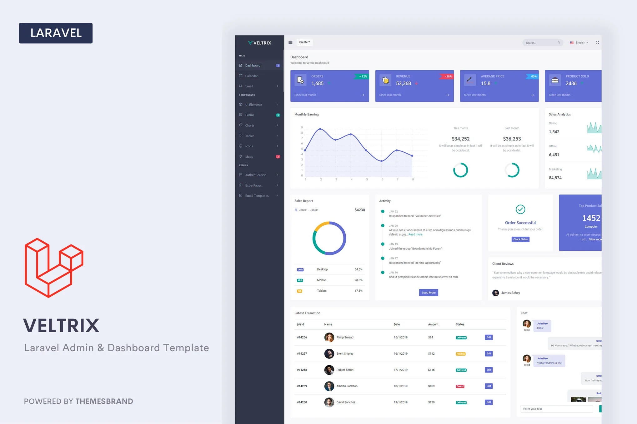 Veltrix Laravel 10 adalah template admin premium yang sepenuhnya responsif dan starter kit yang menggunakan Laravel 10 dan Bootstrap v5.2.0. Template ini memiliki desain yang menarik dan cocok untuk berbagai ukuran layar, seperti monitor, laptop, iPad, iPhone, perangkat Android, hingga tablet. Template ini sempurna untuk memamerkan produk aplikasi, startup, situs web pribadi, hingga agensi web.