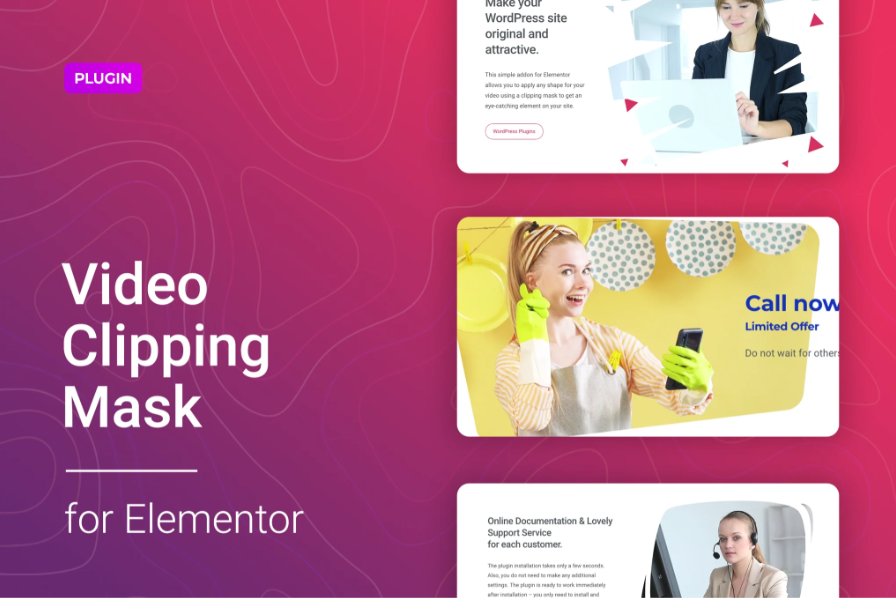 Buat situs WordPress Anda menjadi lebih original dan menarik dengan menggunakan Video Clipping Mask untuk Elementor. Plugin sederhana ini memungkinkan Anda untuk menerapkan bentuk apa pun pada video menggunakan clipping mask untuk menciptakan elemen yang menarik di situs Anda. Selain itu, Anda dapat menggunakan item ini untuk menambahkan latar belakang video pada teks atau blok lainnya untuk memperkuat pesan situs Anda dan menarik perhatian pengunjung.
