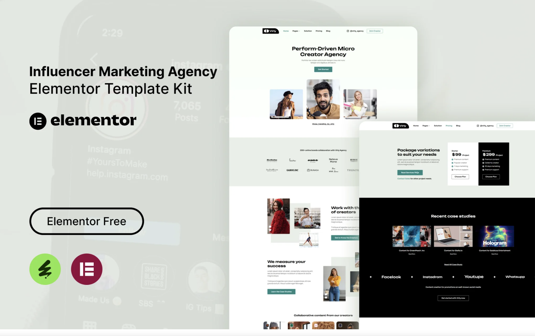 Virly – Influencer Marketing Agency Elementor Template Kit