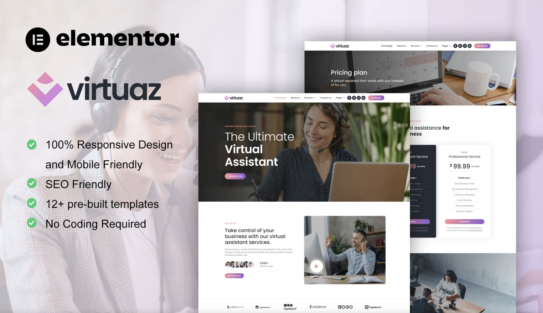 Virtuaz – Virtual Assistant Business Elementor Template Kit
