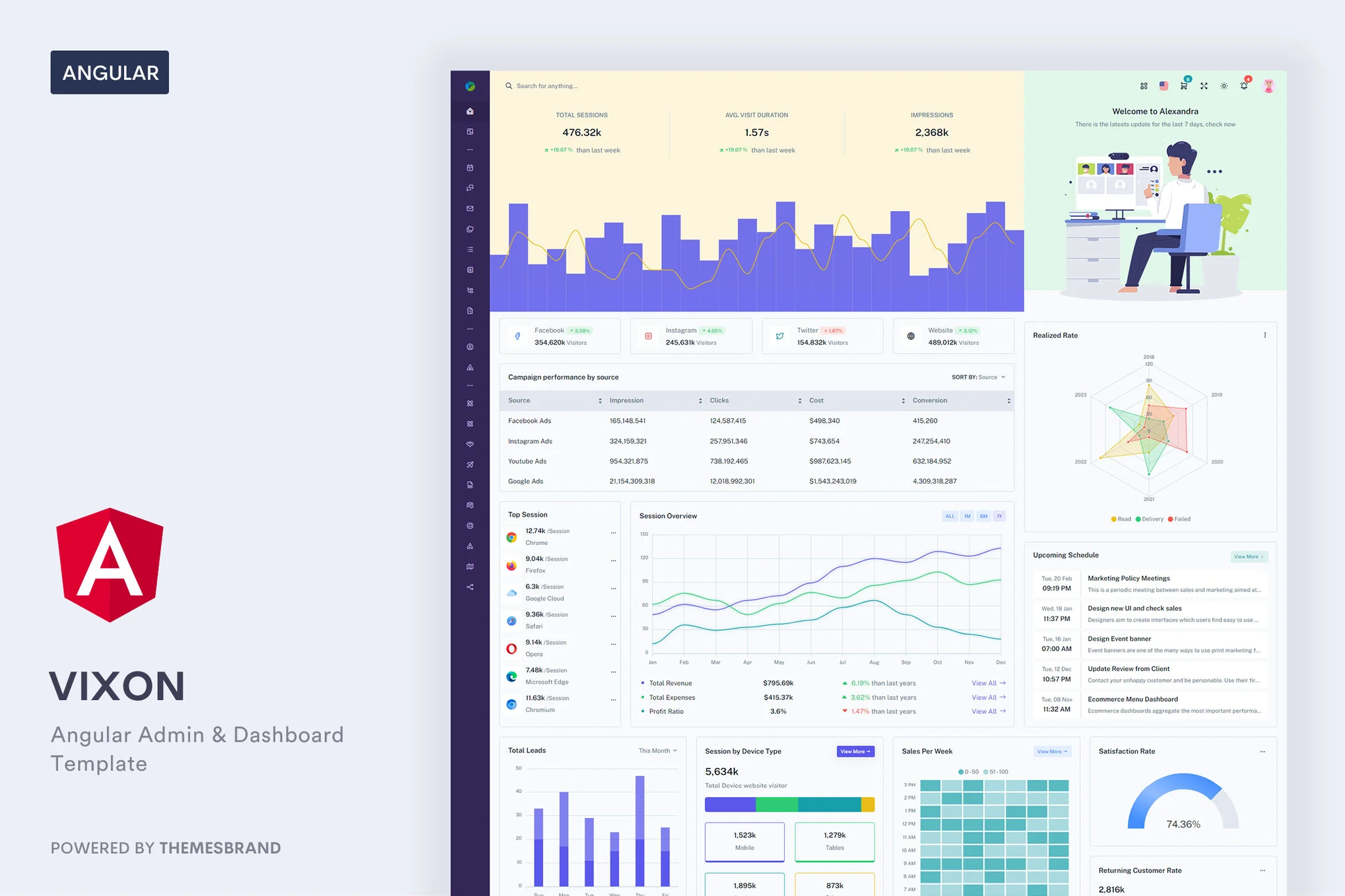 Vixon memiliki lebih dari 100 halaman, lebih dari 35 komponen, lebih dari 30 grafik, dan lebih dari 15 widget dengan desain responsif penuh di desktop, tablet, dan perangkat mobile.
