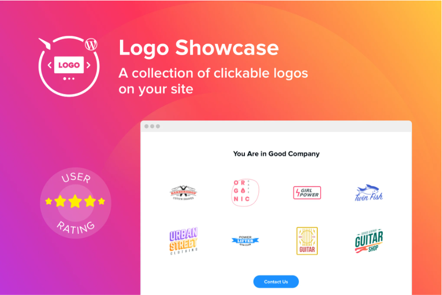 Dengan bantuan plugin Elfsight, tampilkan logo klien paling penting, tunjukkan mitra atau pendukung, dan beri tahu klien apa yang mereka katakan tentang Anda di media massa. WP Logo Showcase memungkinkan Anda menampilkan sejumlah logo hanya dengan mengunggah gambar. Anda juga dapat membuat logo dapat diklik dan menetapkan tautan ke alamat mana pun. Judul plugin dan tombol CTA akan membantu mengubah pengunjung situs menjadi prospek baru.